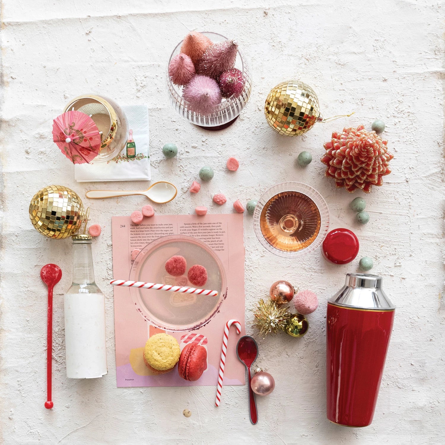 This 22-ounce cocktail shaker is a fusion of form and function, featuring a rich red enamel coating complemented by a sophisticated gold rim. The stainless steel construction ensures durability, while the enameled surface provides a smooth, easy-to-clean finish. Its large height and diameter make it great for mixing numerous cocktails at once, entertaining guests, or honing creative mixology talents. The shaker's eye-catching design makes it a bold addition to any bar cart or countertop, promising to be as much a conversation starter as the cocktails it creates. Whether a seasoned bartender or a cocktail enthusiast, this shaker is sure to become a cherished part of any collection.