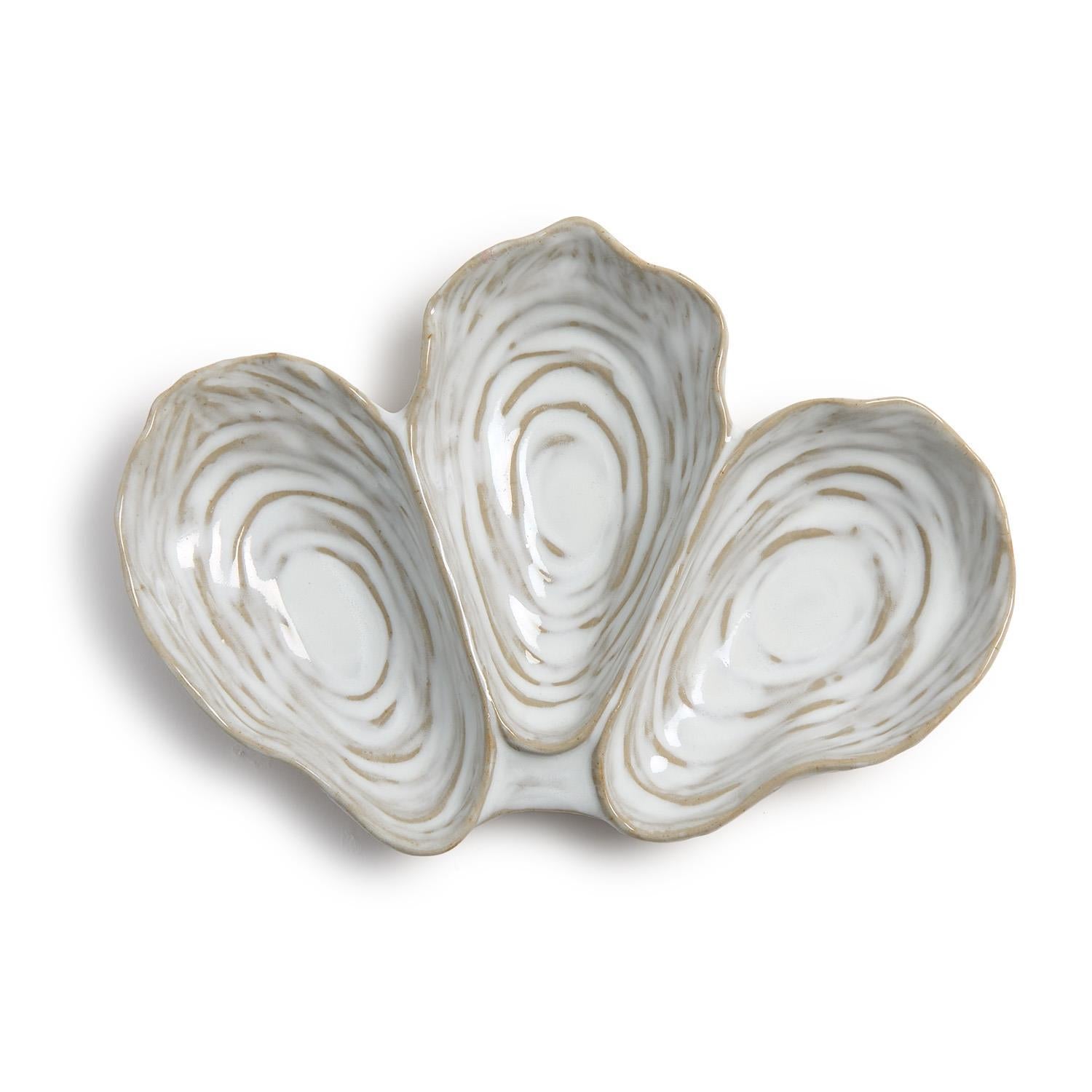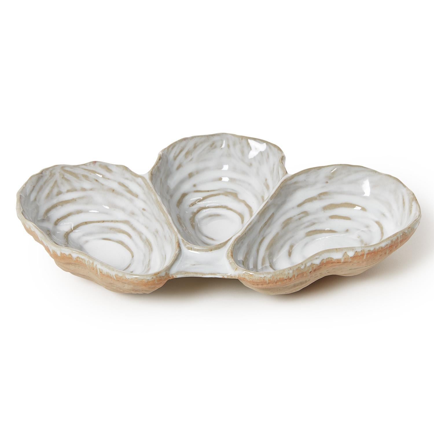 Handcrafted with artisanal precision, this three-section oyster shell tidbit dish showcases a reactive glaze finish that creates unique color variations across each piece. The organic shell-inspired shape adds coastal elegance to any table setting, while the divided compartments provide practical serving solutions for appetizers, nuts, or small bites. Perfect for entertaining or everyday use, this functional yet decorative piece brings sophisticated charm to your home.