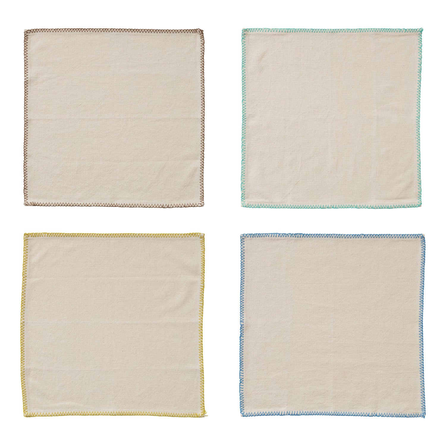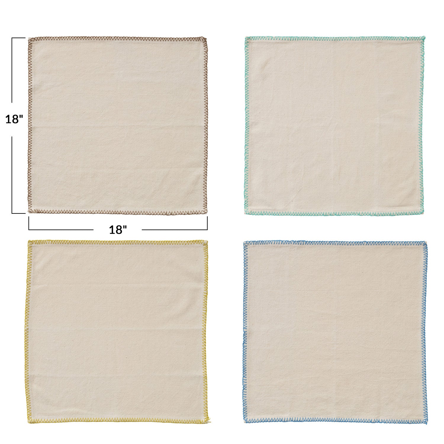 Cotton Napkins w/ Blanket Stitch Colored Edge, Set of 4 Tied w/ Cotton Tape DG1274