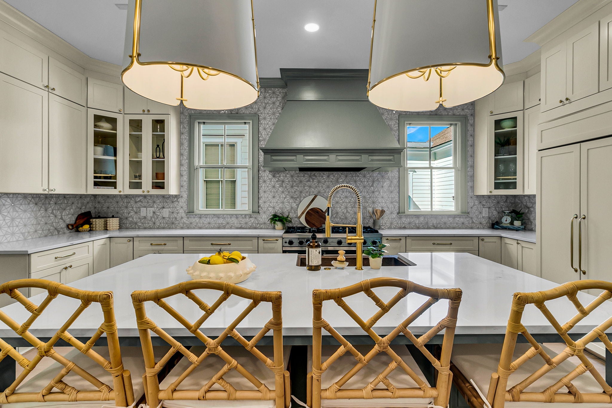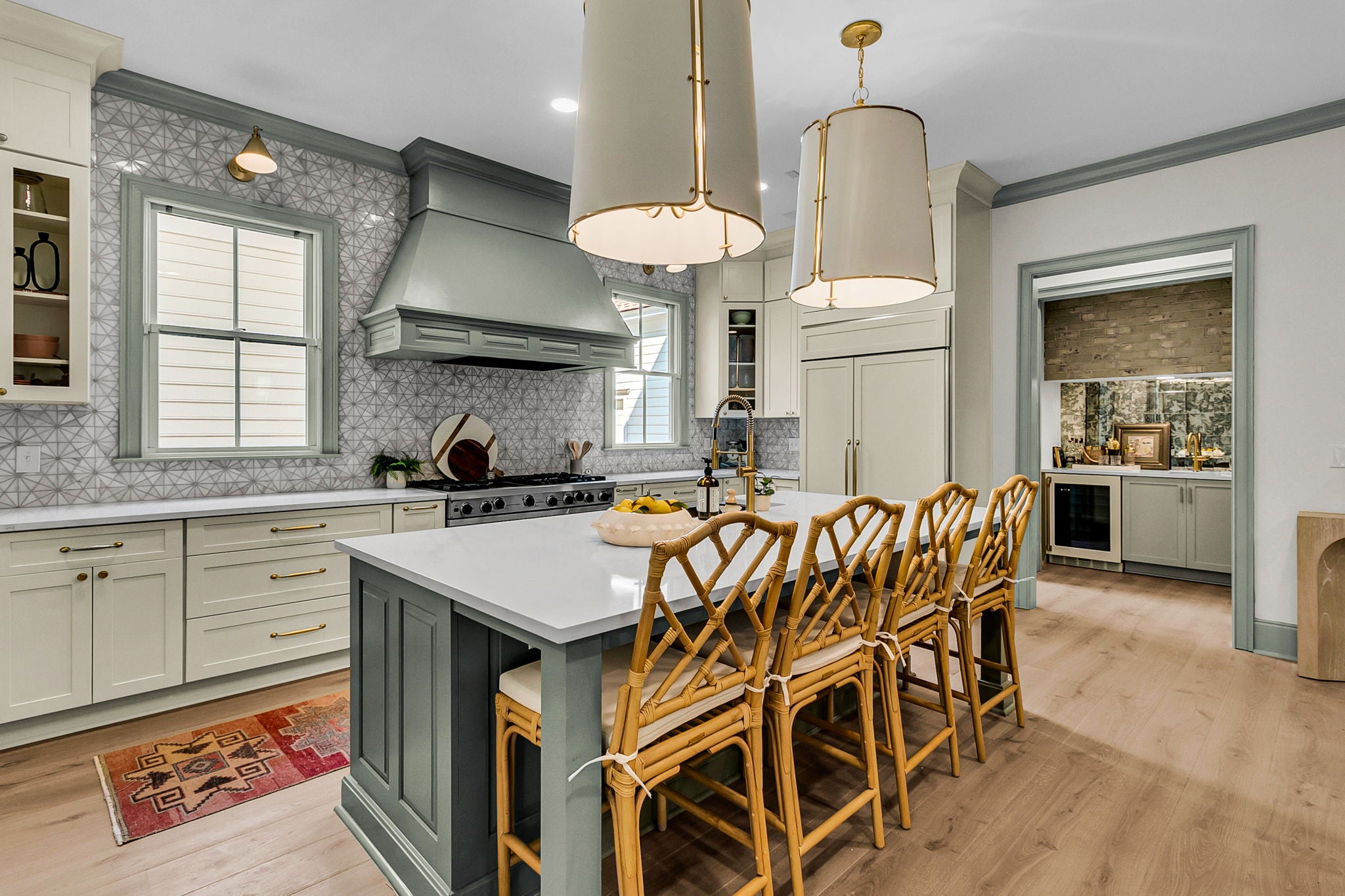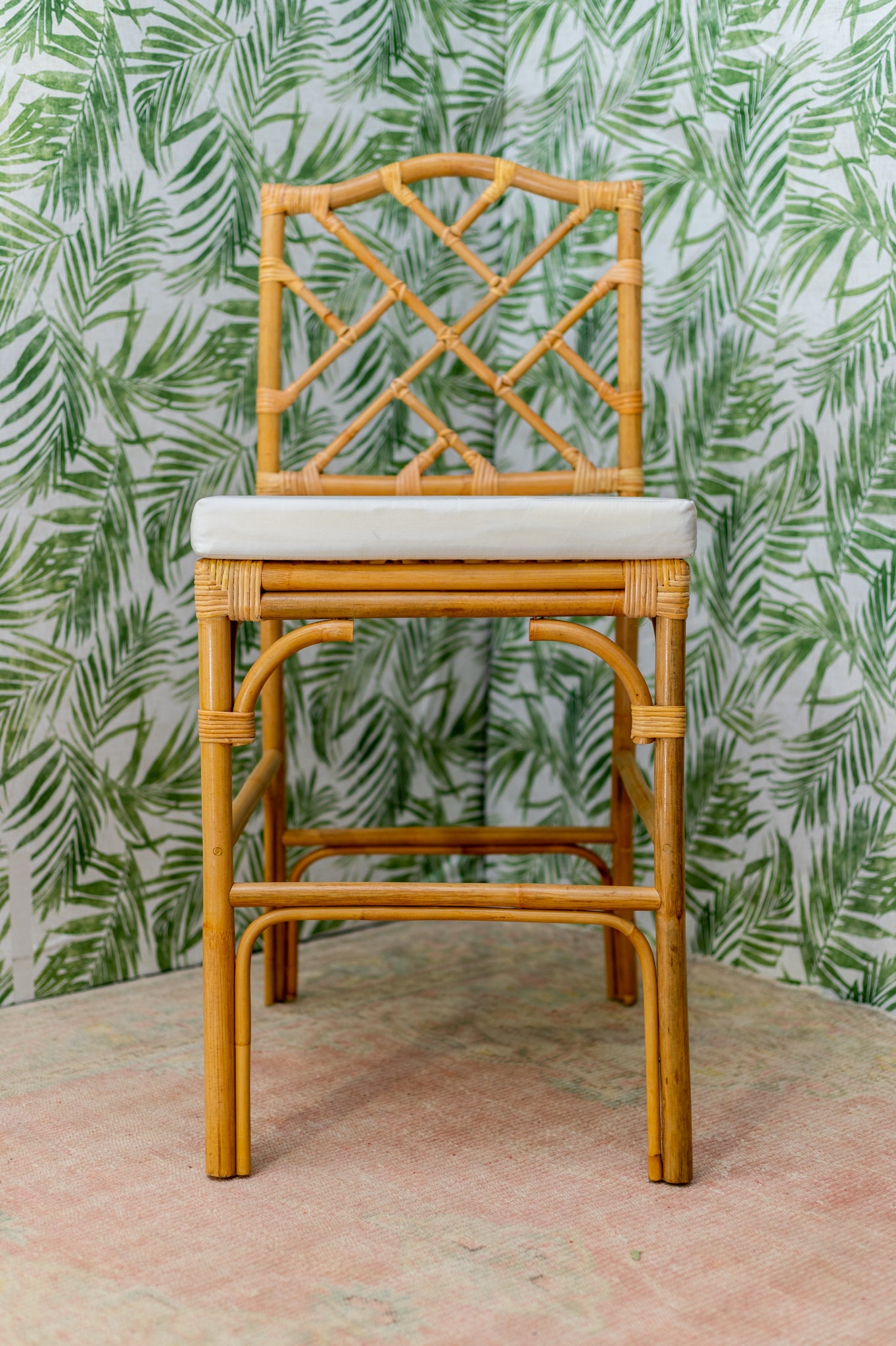 Our Harrow counter stools with lightly rubbed, bamboo-inspired turnings. Richly padded seats remove for easy recovering.