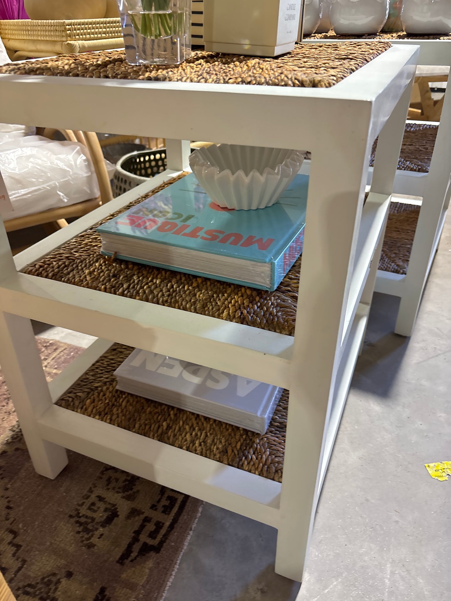 The Hughes Side Table combines natural water hyacinth construction with crisp white accents, delivering both visual warmth and functional elegance. Two generous shelves provide practical storage and display space, while its compact 22" W x 18" D x 24" H dimensions make it an ideal fit for bedside placement, living room corners, or entryway styling. The organic texture of hyacinth weaving adds tactile interest and coastal sophistication to any room, while the sturdy two-tier design accommodates books, décor, or everyday essentials with ease.