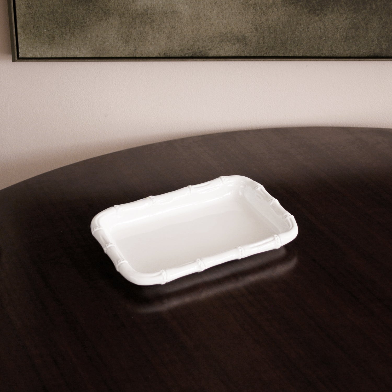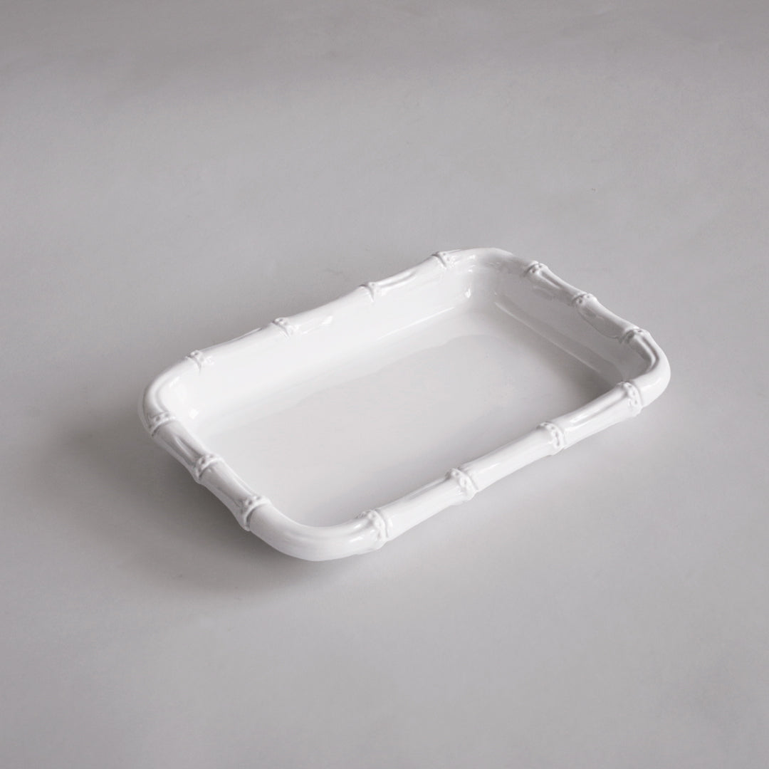 A flattering and classy look for guest towels. The VIDA Bamboo Beverage Napkin Holder (White and Natural), an essential serving piece from Beatriz Ball's VIDA Collection of luxury melamine, is the result of a collaboration between the award-wining tabletop company and noted illustrator, August Wren. With a bamboo inspired rim and a brilliant white surface, the small rectangular tray looks great anywhere. Perfect for a variety of serving needs, the VIDA Bamboo Guest Towel Holder (White and Natural) has the luster, heft and look of a ceramic piece. Holds standard guest towels. Made of luxury melamine for everyday enjoyment, this piece is ideally suited for indoor and outdoor use. Dishwasher safe (top rack), heavy weight, food safe, BPA and PABA free.